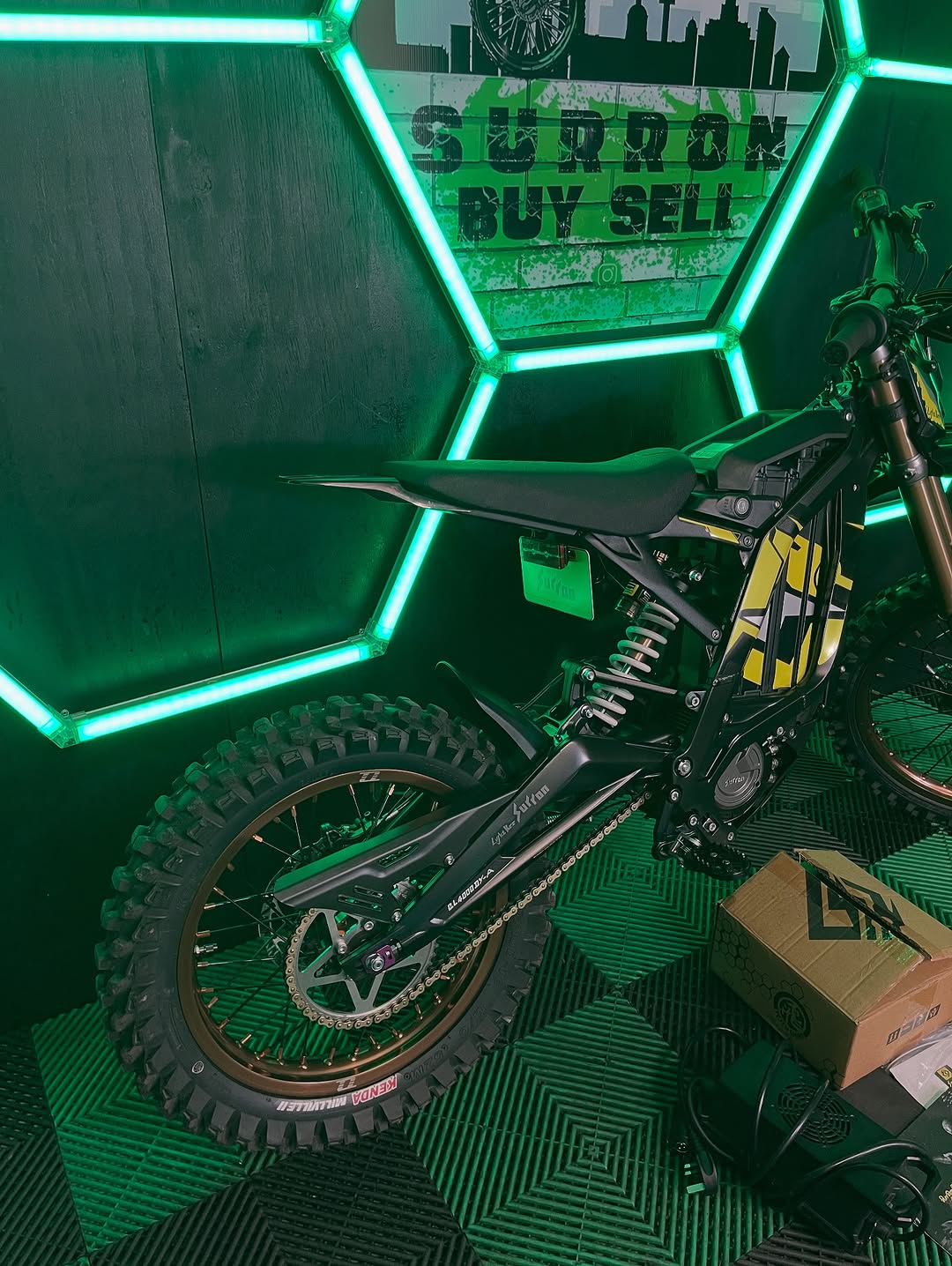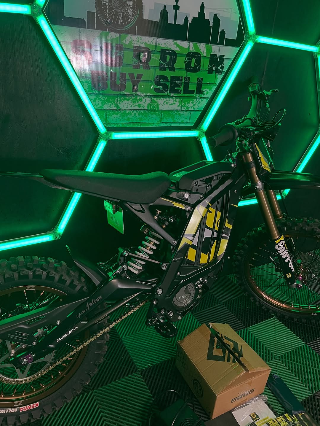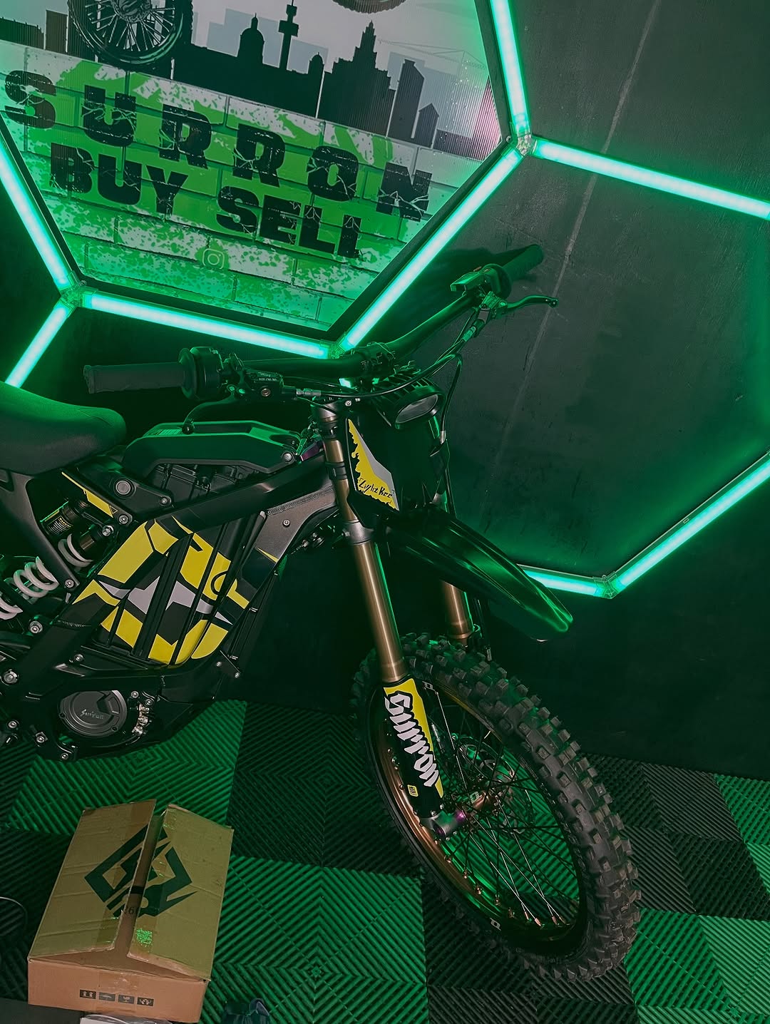 2025 Surron LBX for sale. Latest model with new style battery, controller and motor. Bike’s still new with only 129 males on it, upgraded thirst trap wheels, and comes with al kits